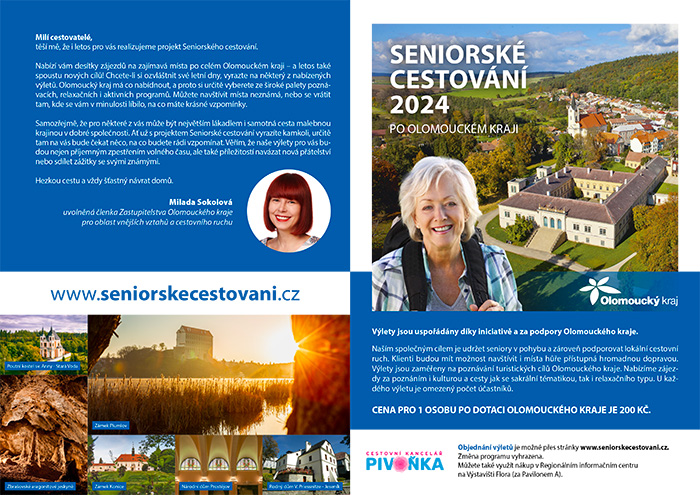 „Všechny výlety zahrnují cestu autobusem, program včetně vstupného, oběd a služby průvodce. Z nabídky si vybere opravdu každý, ať už má rád přírodu, památky nebo technické zajímavosti. Odjezdy jsou naplánované z různých měst, abychom pokryli celý kraj,“ dodala Milada Sokolová, uvolněná členka Zastupitelstva Olomouckého kraje pro oblast vnějších vztahů a cestovního ruchu.