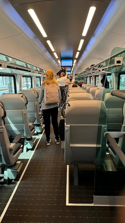 - ergonomická polohovatelná sedadla v 1. třídě v uspořádání 2+1 s koženým potahem a ve 2. třídě v uspořádání 2+2 s textilním potahem, místa jsou za sebou (letecké uspořádání) i proti sobě (vis-á-vis),