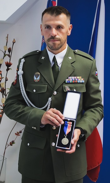 Krajský policejní ředitel Tomáš Landsfeld dnes vyznamenal medailí ředitele Krajského ředitelství policie Olomouckého kraje druhého stupně pětatřicetiletého Milana Hauera, příslušníka 601. skupiny speciálních sil generála Moravce Prostějov a pětadvacetiletého Štěpána Hengeriče, učitele základní školy v Olomouci a současně studenta závěrečného ročníku Přírodovědecké fakulty Univerzity Palackého v Olomouci. Zmínění muži pomohli 18. června dopadnout zloděje, který v olomouckém klenotnictví ukradl plato se zlatými prsteny a přitom si počínali odvážně, když se nenechali zastrašit agresivitou sedmadvacetiletého recidivisty. O tomto úctyhodném činu jste si mohli přečíst v tomto článku.
