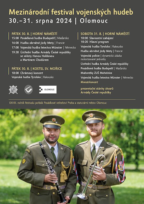 „Letošního XXVIII. ročník festivalu se zúčastní opět čtyři zahraniční orchestry. Z domácích se představí Ústřední hudba Armády České republiky se svým novým showprogramem. V rámci festivalu se můžete těšit například na chrámový koncert vojenské hudby z Rakouska nebo na netradiční nástrojové obsazení a uniformy orchestru z Francie. V rámci hlavního programu festivalu bude zajímavé vidět hudebníky z Německa, Maďarska, či dynamickou ukázku motorizované jednotky Vojenské policie nebo vystoupení mažoretek. Rád bych také pozval posluchače na koncert Ústřední hudby Armády ČR se sólisty Hanou Holišovou a Martinem Chodúrem, který se koná v předvečer zahájení festivalu na Horním náměstí v 19:30 hodin,“ přiblížil velitel Posádkového velitelství Praha plukovník Radek Šíba
