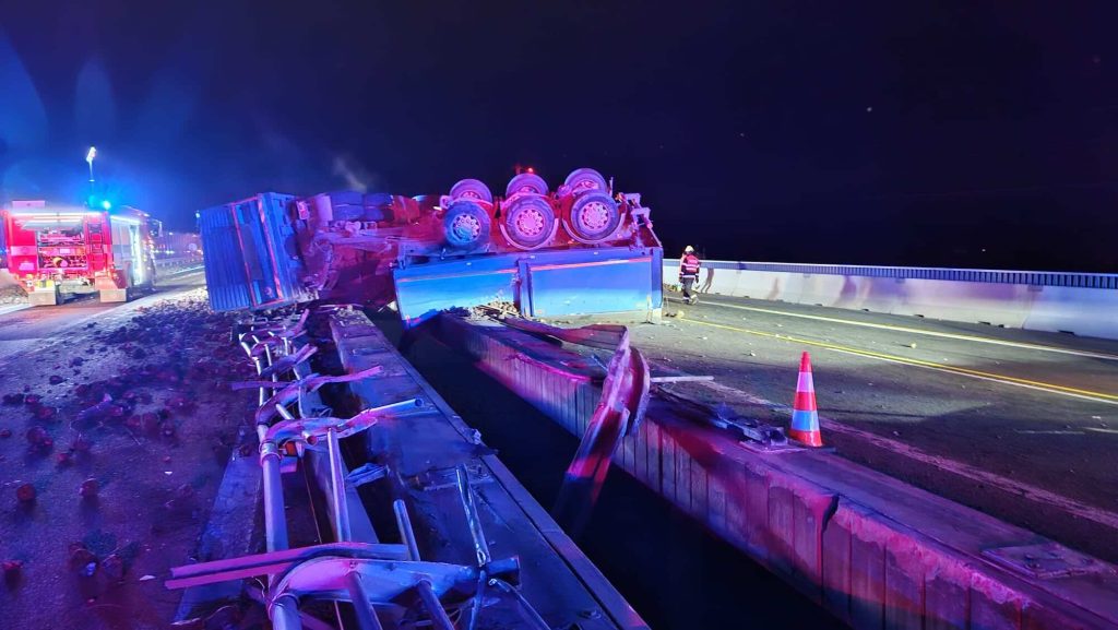 Sedmačtyřicetiletý řidič kamionu jel od Olomouce na Ostravu a podle vlastních slov usnul, narazil do svodidel a převrátil se. „Tahač skončil v protisměru a z tohoto důvodu byla dálnice v místě nehody uzavřena v obou směrech,“ informoval policejní mluvčí Libor Hejtman. Těžce zraněný řídíš zůstal v kabině zaklíněný a vyprostit ho museli hasiči. „Velmi složitý zásah mají za sebou olomoučtí hasiči. U komplikovaného vyprošťování těžce zraněného řidiče z kabiny nákladního automobilu museli být nasazeni i hasiči-lezci,“ popsala mluvčí hasičů Lucie Balážová. Vyproštěného řidiče hasiči předali do péče záchranářů, kteří ho převezli do Fakultní nemocnice Olomouc.