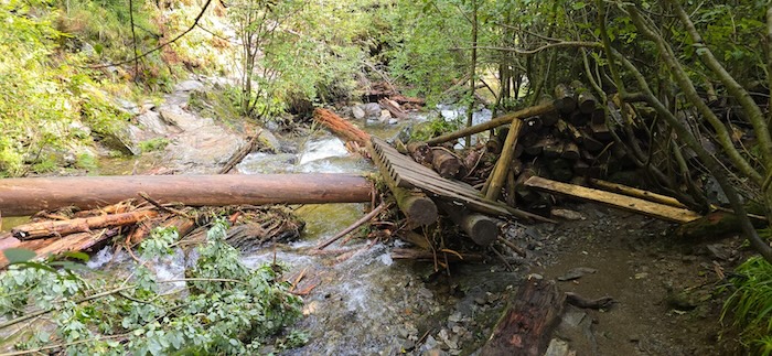 Poničené lávky přes vodopády Bílé Opavy