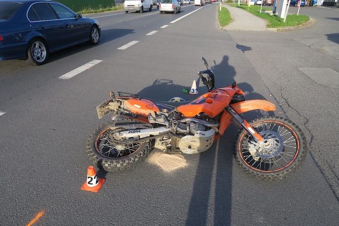 Řidič v Jaguaru jel v pátek odpoledne od Rapotína po Jesenické ulici v Šumperku. „U čerpací stanice Eurooil při odbočování vlevo jej údajně oslnilo slunce a on přehlédl protijedoucího řidiče jedoucího na motocyklu, který jel ze směru od obce Bludov po krajnici vpravo vedle průběžně jedoucích vozidel a narazil přední částí motocyklu do pravé strany vozidla, které již najíždělo na uvedenou benzinku,“ popsala policejní mluvčí Miluše Zajícová. Při srážce spadl motorkář na silnici a zranil se. Po ošetření na místě byl převezen do místní nemocnice. Dechová zkouška vyloučila u obou řidičů vliv alkoholu, škodu policisté předběžně odhadli na 80 000 korun.