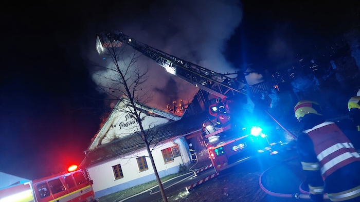 Požár hospody v Lazníkách na Přerovsku zaměstnal 6 jednotek profesionálních i dobrovolných hasičů. „Rozsáhlý požár hasí šest jednotek profesionálních a dobrovolných hasičů, nasazena je výšková technika,“ informovala mluvčí hasičů Lucie Balážová. Na požářišti teď vyšetřovatelé hasičů a kriminalisté zjišťují příčinu požáru. Škoda se podle předběžného odhadu vyšplhá až k 15 milionům korun.