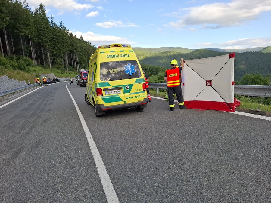 Tragická nehoda jednačtyřicetiletého motorkáře se stala ve čtvrtek 19. června odpoledne v zatáčce pod Červenohorským sedlem. Motorkář jel podle policie nejspíš moc rychle a narazil do svodidel. Zraněním i přes veškerou snahu záchranářů podlehl. O této smutné události jste si mohli přečíst v tomto článku.