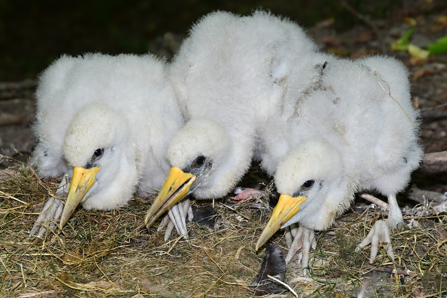Mezi další ptačí mláďata patří pět čápů černých. Z pěti nakladených vajec se chovnému páru podařilo odchovat všechna, což je zdaleka nejvíce, co se kdy podařilo. Spolu s mladým párem, který létá v nově otevřené voliéře Bábovka, tak pobývá v Zoo Olomouc aktuálně devět čápů černých. V zázemí také rodiče odchovali i dva samečky sympatických amazónků černotemenných. Tito nepřehlédnutelní papoušci chovaní dlouhé roky pouze v zázemí se již brzy představí návštěvníkům zoo . Při procházce spodní částí zoologické zahrady nelze přeslechnout křik hejna arating černohlavých. Tito papoušci úspěšně odchovali prozatím pět mláďat, ale sezóna ještě není u konce.