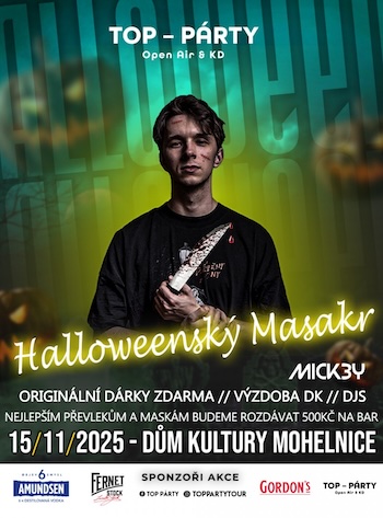 Helloweenská party nabídne DJs (např. DJ MICKBY), originální výzdobu, hromadu dárků a také soutěže pro nejlepší masky.