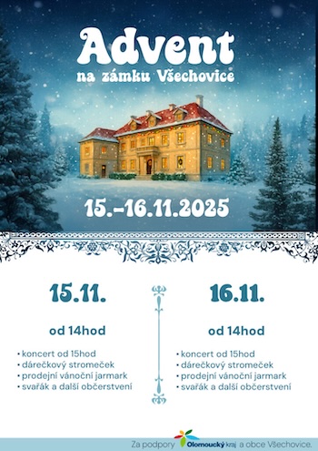Co: přijďte si užít vánoční atmosféru na zámku Všechovice. Připraven bude všemi oblíbený dárečkový stromeček, výjmečný koncert a prodejní vánoční jarmark s mnoha krásnými ručními výrobky! Nebude chybět ani teplý svařák a bohaté občerstvení.