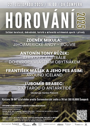 Co: 32. ročník setkání horolezců, dobrodruhů, turistů a milovníků extrémních sportů i přírody. Letos přivítá Čecho – Australana Antonína Tonyho Růžka, který bude sdílet zážitky v rámci svého vystoupení nazvaného Afrikou z Austrálie do Evropy vlastním obytňákem. Domácí barvy na Horování bude letos hájit postřelmovský horolezec Zdeněk Mikula s přednáškou o dobrodružství v jihoamerických Andách a Bolívii. Další hvězdou festivalu bude určitě kameraman František Mašek, který promítne film i fotografie zachycující známá i méně známá místa na Islandu a Faerských ostrovech. Hudebník Lubomír Brabec přiblíží své zážitky z Antarktidy a na závěr festivalu své vystoupení proloží i hrou na kytaru. Součástí festivalu bude také výstava připomínající výročí 70 let SKI KLUBU Šumperk a 70 let lyžařského areálu Červenohorské sedlo.