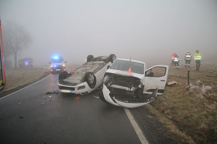 V pondělí 15. prosince po půl desáté dopoledne nezvládl řidič v Octavii jízdu v mlze na okresce nedaleko Moravského Berouna. „Podle zjištěných informací jeho 31letý řidič (vozidla Škoda Octavia) jedoucí ve směru od obce Huzová k obci Arnoltice nepřizpůsobil rychlost jízdy především stavu komunikace a povětrnostním podmínkám,“ vysvětlila policejní mluvčí Ivana Skoupilová. V zatáčce vyjel mimo silnici, kde narazil do Toyoty, se kterou zde asi hodinu předtím havaroval 57letý řidič a čekal na odtah. Při dopravní nehodě utrpěl 31letý řidič zranění, se kterým byl převezen do šternberské nemocnice. Dechová zkouška vyloučila vliv alkoholu. Škodu policisté vyčíslili přibližně na 300 tisíc korun.