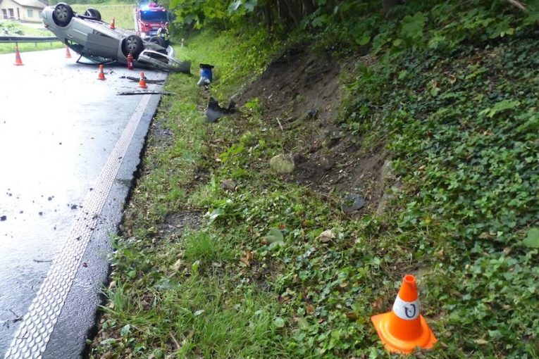 Senior se prý lekl protijedoucího náklaďáku a otočil auto na střechu