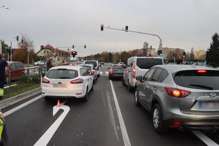 Jak zákon káže za bílého dne. Starší řidič způsobil řetězovou nehodu na nejfrekventovanější ulici v Olomouci