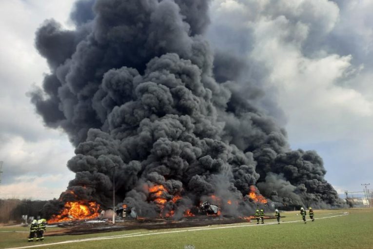 Černý dým zahalil oblohu. V Hustopečích nad Bečvou hoří vlak s toxickým benzolem