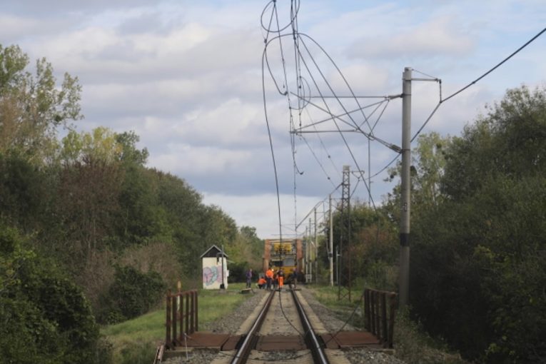 Kombajn na železničním přejezdu strhl trolejový drát