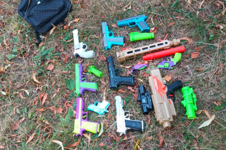Mladík na veřejnosti pózoval s dětskými pistolkami a natáčel si videa na mobil