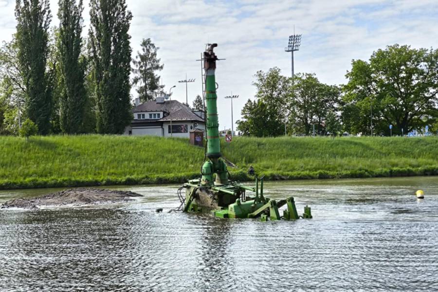 Nasazený speciální dálkově ovládaný podvodní buldozer je obojživelný kolos, který přesahuje hmotnost čtyřiceti tun. „Tento stroj dokáže pracovat až sedm metrů pod hladinou a jeho úkolem je odstraňovat nánosy štěrku a kamení, které se zde usadily po povodních,“ uvedl mluvčí města Pardubice Daniel Vodák. Stroj je vybaven komínem, který je vysoký sedm metrů.