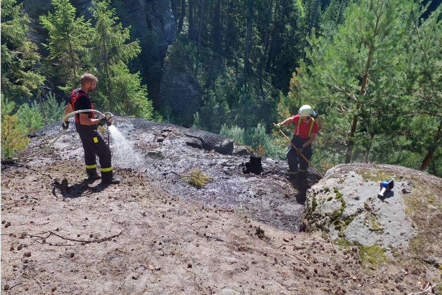 Ve stejnou dobu likvidovaly další jednotky z Chrudimi, Litomyšle, Hlinska a dobrovolné z Budislavi, Luže, Nových Hradů a Proseče požár hrabanky na skále v lese. Hořelo na ploše zhruba 15 x 15 metrů a v krátké době se jim podařilo oheň lokalizovat, i když se nacházel ve špatně přístupném terénu. Na místo přijela lezecká skupina hasičů. Příčinu celého požáru nyní zjišťuje vyšetřovatel.