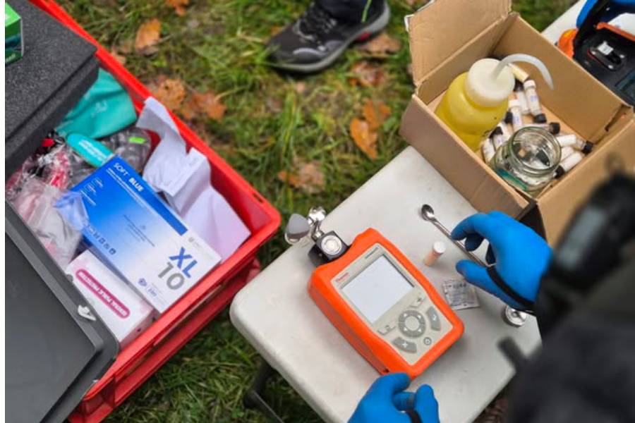 Jeden z obalů obsahoval chloristan amonný a na místě ostatní pracovníci laboratoře odebrali třicet vzorků, které analyzovali za pomoci kombinace Ramanovy a infračervené spektrometrie. „Z výsledků analýzy vyplynulo, že se jedná o netoxické látky, které pravděpodobně pocházely z analytické laboratoře zabývající se stanovováním iontů v půdě,“ dodal Stryka. Další rizika tedy ani pro životní prostředí ani pro zdraví lidí nehrozí a celou událost nyní šetří policie.
