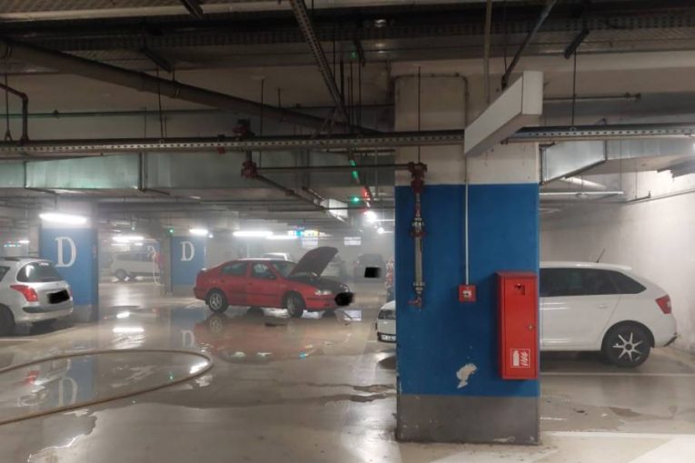 V podzemním parkovišti Paláce Pardubice hořelo auto