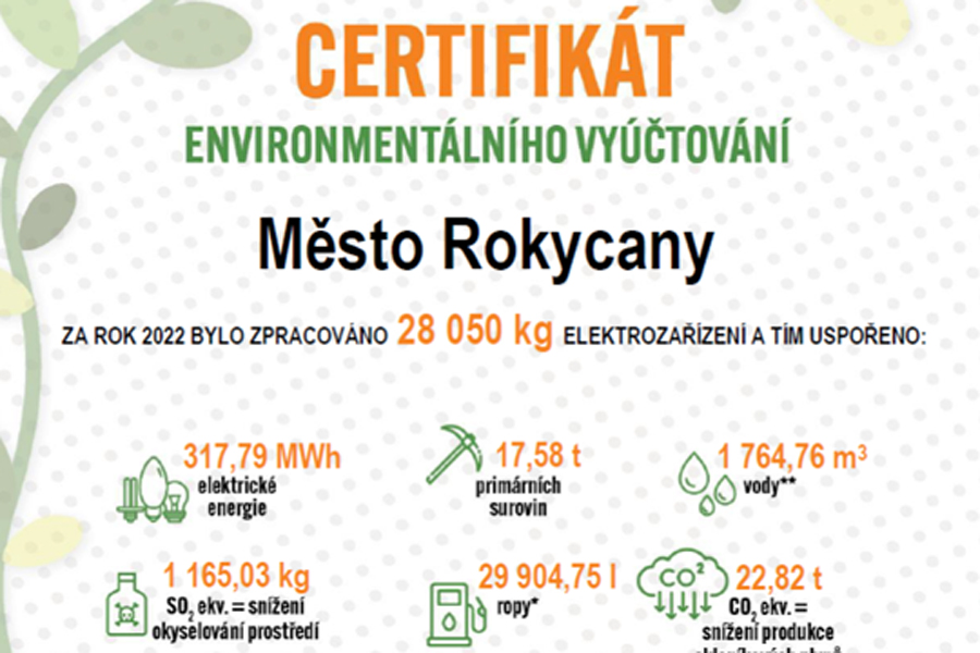 Této situace si je dobře vědomo město Rokycany, které si pro zajištění sběru a recyklace již vysloužilých elektrozařízení vybralo ke spolupráci také kolektivní systém ASEKOL. Díky němu tak bylo za rok 2022 zpracováno neuvěřitelných 28 050 kilogramů elektrozařízení, a tím uspořeno přes 17 tun primárních surovin či 317 MWh elektrické energie. Díky zodpovědné recyklaci vznikla úspora elektrické energie ve výši 317,79 MWh, ušetřili jsme 17,58 tun primárních surovin a 1 764,76 metru krychlových vody. Úspora takového množství vody se rovná množství, které je spotřebováno při 23 689 cyklech sprchování. Dále bylo uspořeno 29 904,75 litru ropy, což odpovídá spotřebě běžného osobního automobilu k ujetí 439 600 kilometrů. A především jsme také snížili produkce skleníkových plynů o objemu 22,82 tun,“ vysvětlil Tomáš Lavička, který má na starosti odpadové hospodářství města Rokycan.