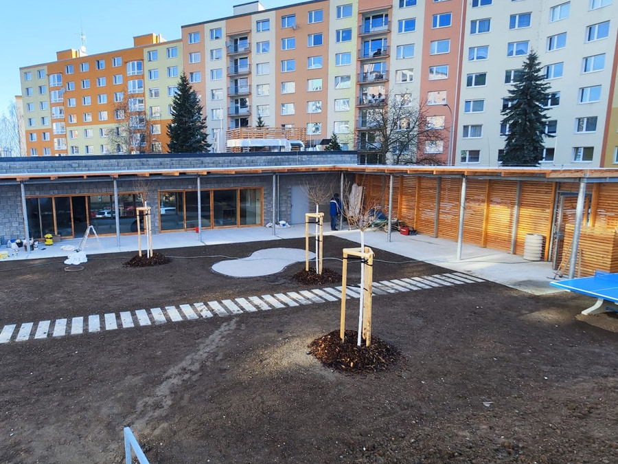 Následně vznikl architektonický návrh, ke kterému se mohli vyjádřit občané během veřejného projednání. Se samotnými pracemi se začalo loni v březnu. „Tohle místo si proměnu určitě zasloužilo a já věřím, že zatraktivní život na zdejším sídlišti, především pak rodinám s dětmi,“ podotkl Miroslav Šuma. Prostor také bude oázou zeleně, zahradníci zde totiž vysázeli dohromady 27 listnatých stromů, především dubů, javorů a třešní a jeden jasan úzkolistý. Zelená je pak i plochá střecha zdejší kavárny, kterou pokryly rozchodníkové rohože, jež ve vnitrobloku přispějí ke zlepšení mikroklima zejména v horkých letních dnech.