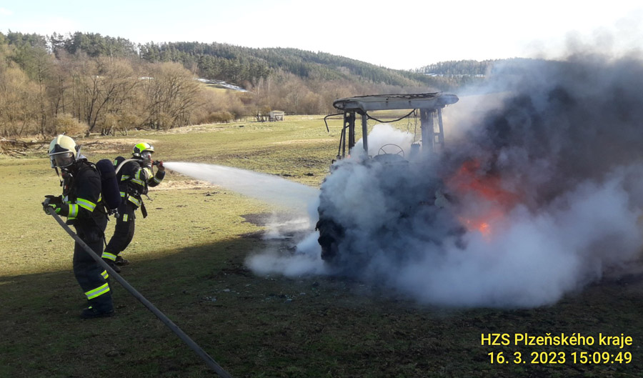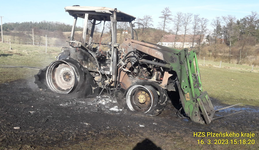 Ve Frymburku na Klatovsku se vzňal traktor. „Požár traktoru je v plném rozsahu. Výše škody a příčina jsou momentálně v šetření,“ informoval mluvčí hasičů Petr Poncar.
