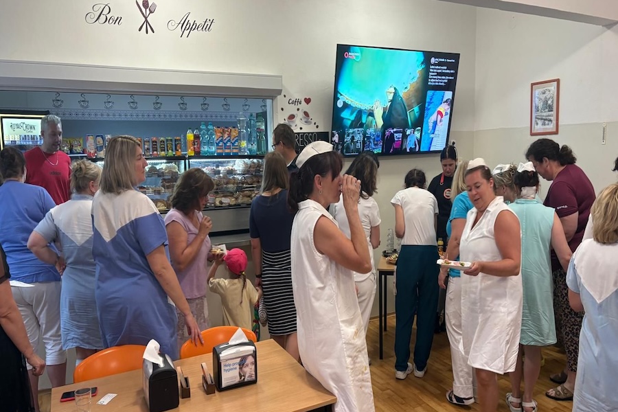 Nemocniční stravování zůstává beze změn. „Pacienti si kuchyni chválí, využívají ji i externí strávníci. Bistro jim ale nabízí možnost uspokojit vlastní chutě či zvyklosti,“ doplnil ředitel Grolmus. Novinkou v jídelně je také velkoplošná televize s úhlopříčkou 180 cm. „Pacienti, zejména muži, si stěžovali, že televize na pokojích jim nevyhovují, i když mají 80 centimetrů,“ vysvětlil Grolmus. „Teď si mohou při sledování fotbalu nebo hokeje užít mnohem lepší zážitek.“