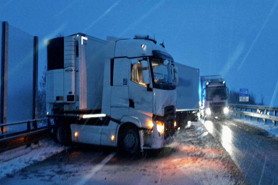 Značné komplikace hlásí zejména řidiči nákladních vozidel, kteří se potýkají se sjízdností silnic v kopcovitých úsecích. Policie jim doporučuje vyčkat na úklid komunikací nebo na průjezd pracovníků silniční údržby a nepokoušet se o rizikové manévry.