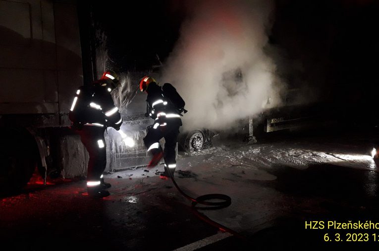 Na Rokycansku na dálnici D5 vzplál kamion plný palet