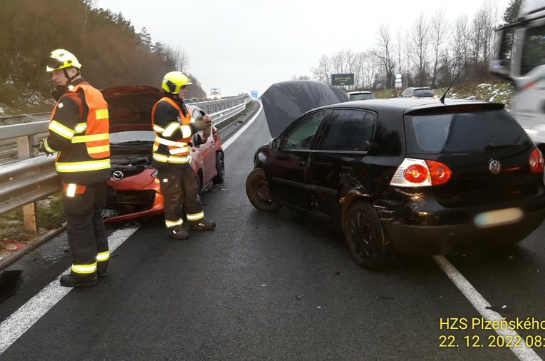 PLZEŇ – Dnes krátce před osmou hodinou ráno došlo na přivaděči z dálnice D5 směrem k Plzni zhruba na úrovni Kyšic k dopravní nehodě. Střetla se tam dvě osobní auta …