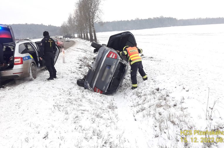 PLZEŇSKO – Dnes krátce před osmou hodinou ráno na silnici mezi Dobřanami a Vysokou došlo k dopravní nehodě osobního auta. To nešťastným způsobem vyjelo z vozovky a zůstalo převrácené na boku v příkopu. …