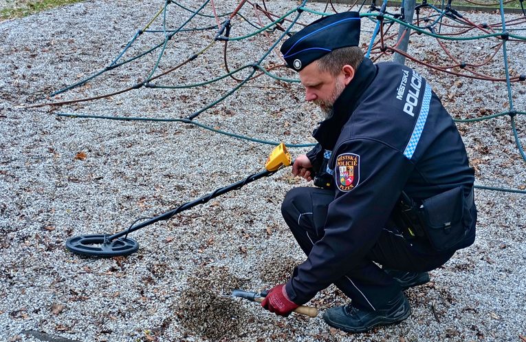 Plzeňští strážníci vyrazili na dětská hřiště a pískoviště s detektorem kovů