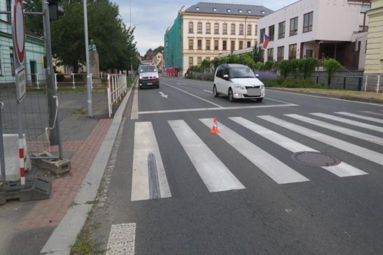 FOTO: Cyklista v Domažlicích ujel po střetu s autem. Policie hledá svědky