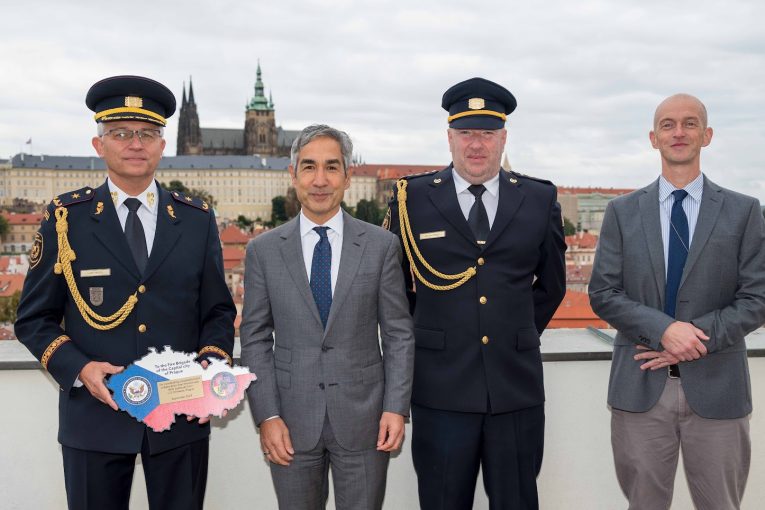 Pražští hasiči se setkali s americkým velvyslancem, který ocenil jejich spolupráci