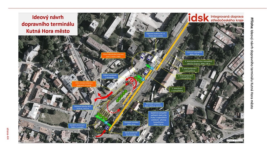 Terminál má vzniknout z vlakového nádraží Kutná Hora město a z přilehlých pozemků, které by sloužily jako nástupiště linkových spojů. Současné autobusové nádraží – na velmi lukrativním pozemku – by podle starosty dočasně sloužilo jako parkoviště turistických autokarů.