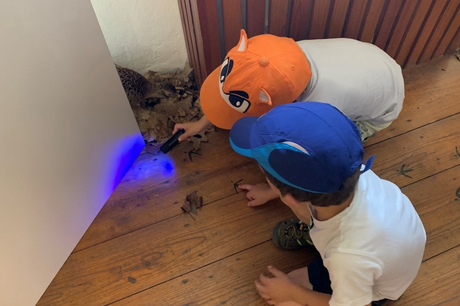 Jedním z nejzajímavějších prvků výstavy je přírodovědný kvíz pro děti, který je provede příběhem sledování stop lesních zvířátek. Odpovědi na otázky kvízu mohou děti odhalit pomocí speciální UV svítilny, která zviditelní tajemství napsané na podlaze. Pro ty nejzvídavější je připravena možnost vyřešit detektivní případ – koho asi měla sova k večeři – za pomoci mikroskopu.