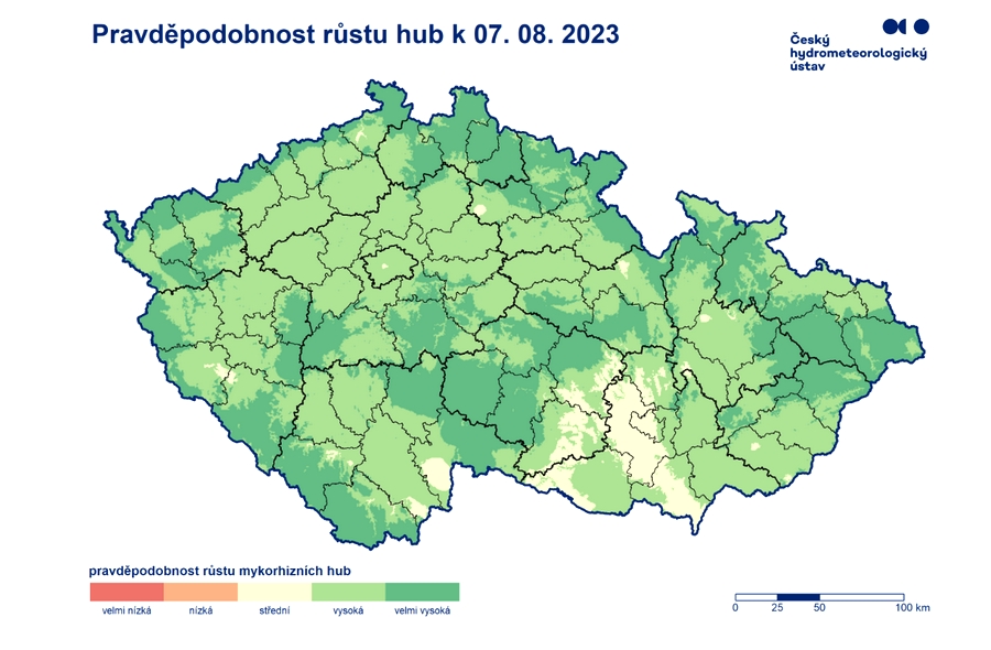 Pomocníkem pro orientaci vám může být mapa, kterou připravuje Český hydrometeorologický ústav (ČHMÚ) ve spolupráci s Českou mykologickou společností. Inovovaná mapa zachycuje pravděpodobnost růstu hub po okresech. Nejlépe odráží pravděpodobnost růstu masitých hub, které nás houbaře zajímají nejvíc. Co je skvělé, že se aktualizuje denně.