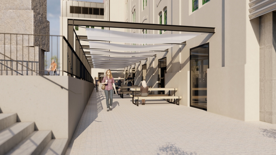 Své místo tu najde i kavárna. Historický původ stavby zároveň připomene sklepní restaurace s malým pivovarem.