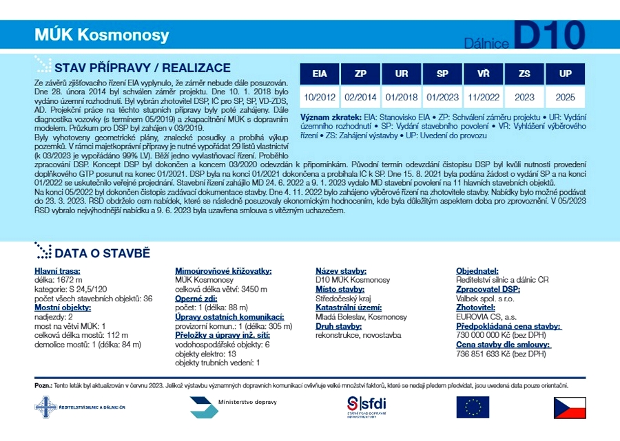 „Součástí projektu je i čtyřproudový most Laurina & Klementa přes dálnici D10, který postavila automobilka. Středočeský kraj připravil změnu územního plánu města Kosmonosy a chystá výstavbu silnice do průmyslové zóny v Plazech i k mimoúrovňovému křížení s dálnicí D10, které dnes zahajujeme,“ vysvětlil ministr Kupka.