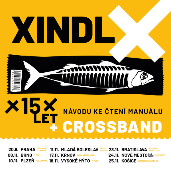 Již v září jste mohli kapelu CROSSBAND vidět jako hosta pražského koncertu na Občanské plovárně. Tour pod názvem 15 let Návodu ke čtení manuálu kapely Xindl X nese stejnojmenný název jako první deska vydaná právě před patnácti lety.