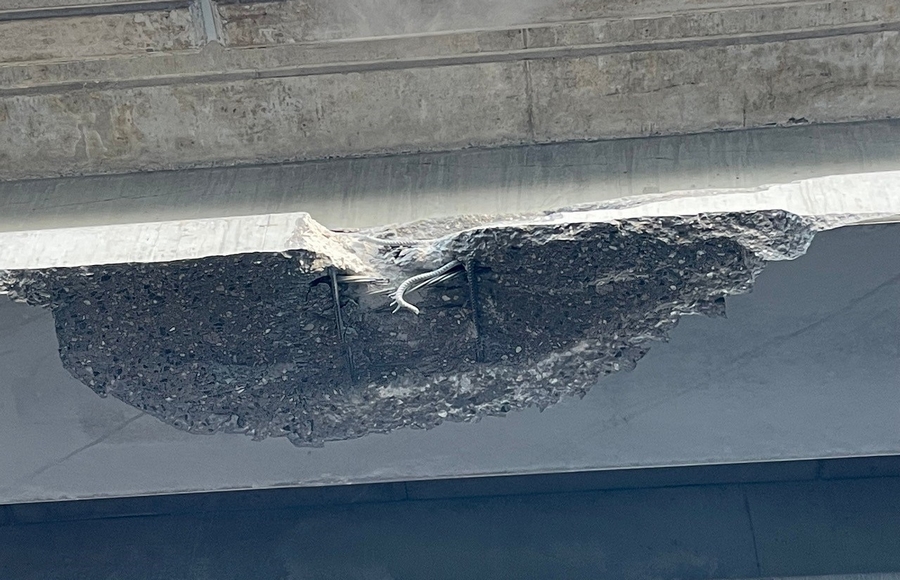 V podhledu nosné konstrukce mostu náraz poškodil tří nosníky, které se musely opravit. Místa s odštípnutým betonem se vyplnila epoxidovým tmelem. Na závěr se plochy poškozeného nosníku opatřily ochranným sjednocujícím nátěrem.