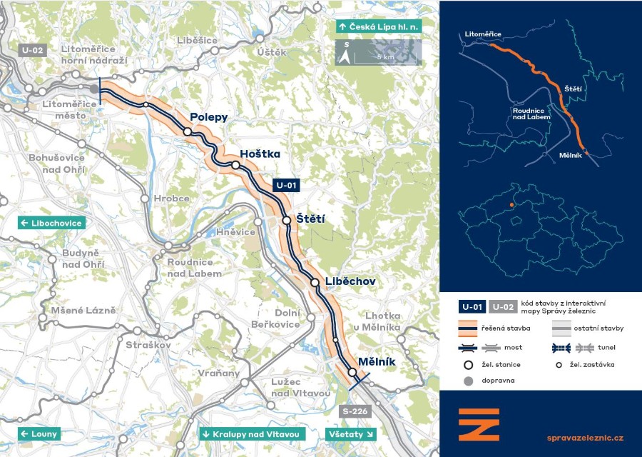 Modernizaci železniční dopravy v úseku o 35 kilometrech mezi Mělníkem a Litoměřicemi doprovází komplexní přestavba infrastruktury. Součástí projektu je modernizace nádraží, jejichž vybavení bude aktualizováno novými, bezbariérovými nástupišti a úpravou zastávkových ploch. tisková mluvčí Správy železnic Nela Eberl Friebová uvedla: „Všechna nádraží získají nová nástupiště s bezbariérovým přístupem, několik stanic se prodlouží pro možnost zastavení nákladních vlaků dlouhých 740 metrů.“ Tato opatření mají zajistit pohodlný a bezpečný nástup do vlaků a přispět ke zvýšení efektivity celého provozu.