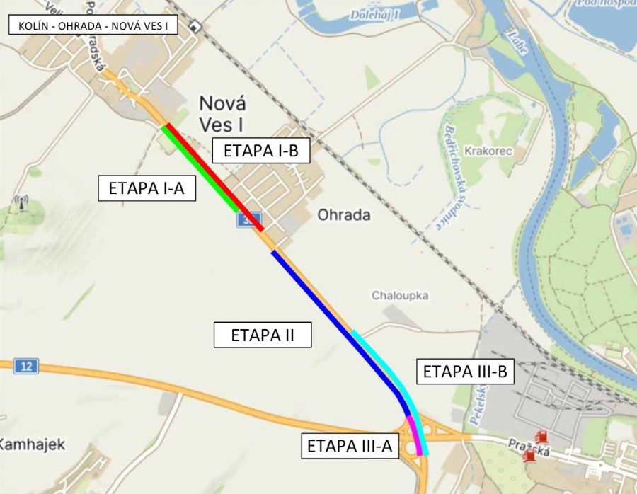 Opravy budou rozděleny do tří etap. První etapa se uskuteční od 9. do 11. dubna, kdy bude opraven jízdní pás směr Kolín mezi Novou Osadou a Ohradou. Následně se práce přesunou na jízdní pás směr Nymburk. Druhá etapa, plánovaná na 29. a 30. dubna, se zaměří na opravu jízdního pásu směr Kolín mezi Ohradou a Kolínem. Poslední etapa oprav proběhne mezi 6. a 7. květnem a bude zahrnovat opravu jízdních pásů směr Kolín i směr Nymburk v prostoru mimoúrovňové křižovatky se silnicí I/12.