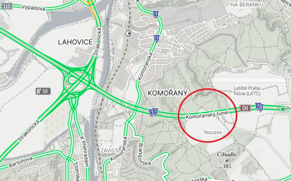 Komořanský tunel je součástí jižního segmentu okruhu na úseku 513 Vestec–Lahovice. Zprovozněn byl v září 2010 a ve všední dny jím projíždí až desítky tisíc vozidel denně. Pravidelné komplexní zkoušky spojené s úplnou uzavírkou se proto konají dvakrát do roka vždy o víkendu, kdy je provoz slabší.