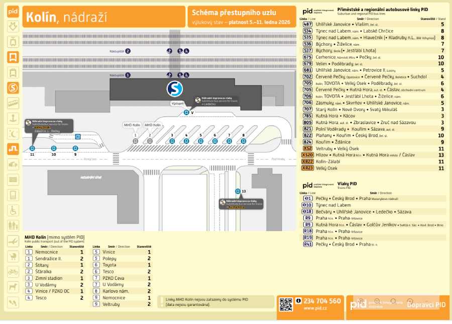 Další omezení potrvá déle na trati z Kolína do Kutné Hory. Od 5. do 25. ledna zde zůstane v provozu jen rychlíková linka R9. Osobní vlaky linky S20 nahradí autobusy, které pojedou mezi Kolínem, Kutnou Horou hlavním nádražím a dál na Kutnou Horu město či do Čáslavi. Z Kolína budou tyto spoje vyjíždět z dočasného stanoviště č. 13 v prostoru odstavných pruhů před prodejnou potravin.