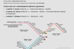 Třetí výlet je naplánován na 7. března a povede přes Úvaly, Poříčany, Nymburk město a Kopidlno do Jičína.