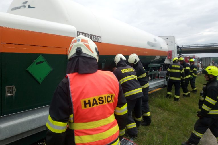 Havárie na D11: Hasiči zasahovali u cisterny s argonem