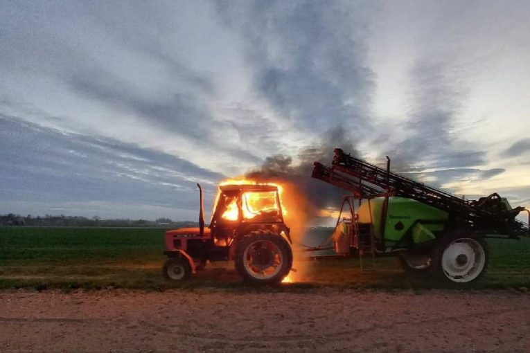 Večer v plamenech: Traktor na poli u Hubenic shořel kvůli závadě