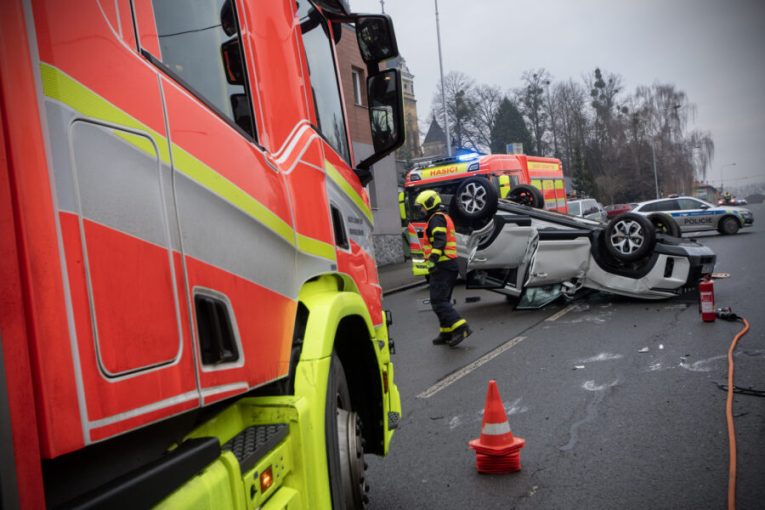 Auto, které řídil senior se po nehodě převrátilo na střechu a narazilo do zaparkovaných aut