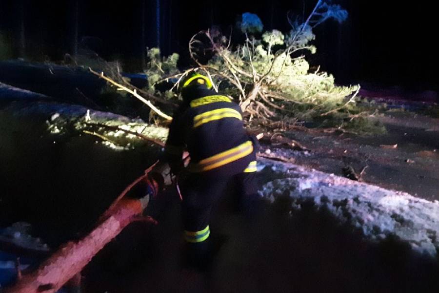 „V sobotu před sedmou hodinou odstraňovali profesionální hasiči ze Žďáru nad Sázavou u Kotlas ze silnice přístřešek zastávky. Do popadaných stromů narazili řidiči s auty u Suché, Otína Rudíkov a Bohdalce,“ uvedla mluvčí krajských hasičů Petra Musilová. Výjezdy hasičů pokračovaly i v sobotu dopoledne.